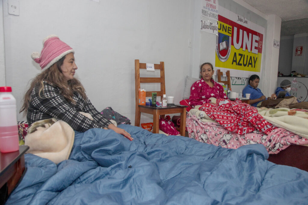 Cuatro docentes de Azuay llevan diez días sin ingerir alimentos, como protesta pacífica, para apoyar las acciones nacionales del gremio de educadores, que instan a la Corte Constitucional a ratificar 141 artículos reformados de la Ley Orgánica de Educación Intercultural para lograr, dicen, mejoras en la educación, equiparación salarial, reintegro de profesores desvinculados, entre otros.