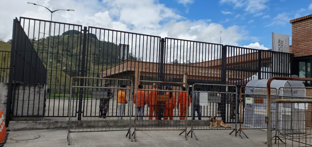 Rafael Pérez, comandante de la Subzona de Policía del Azuay, señala que la institución policial continúa con su responsabilidad de la seguridad externa del centro carcelario y con la emergencia carcelaria se cuenta con el apoyo de las Fuerzas Armadas en el filtro número uno. Y es que está en vigencia por 60 días la situación de emergencia en el Sistema Nacional de Rehabilitación Social. La Policía, a más de la presencia del personal de contingencia penitenciaria, ha reforzado la reacción de uniformados de la Unidad de Mantenimiento del Orden (UMO), Servicio Preventivo, Unidad de Inteligencia y de la Unidad de Equitación y Remonta; lo que implica que la vigilancia está a cargo de al memos 300 funcionarios policiales.