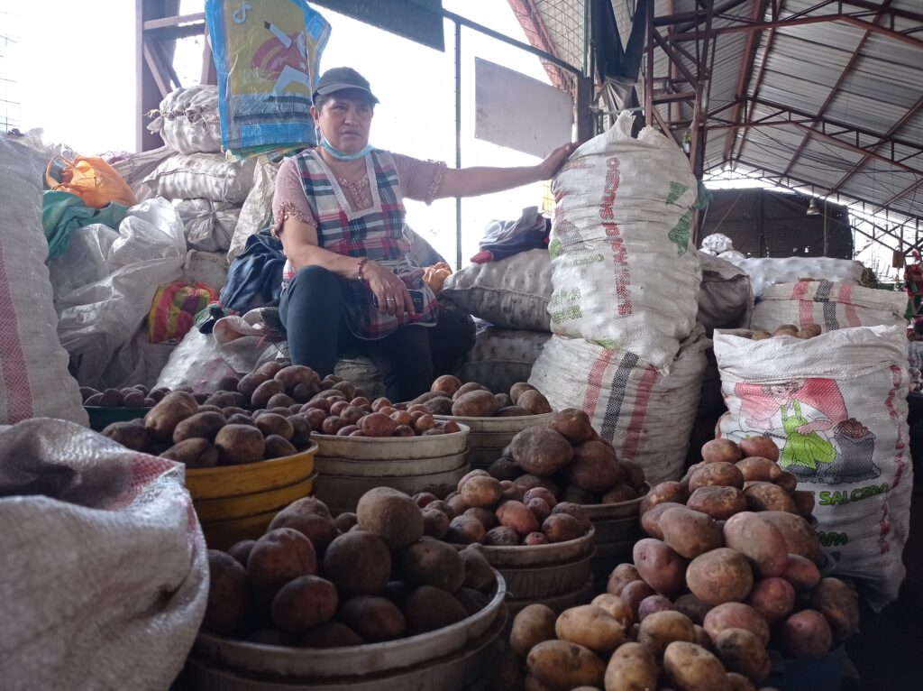 Yolanda Solórzano se dedica al comercio de papas por 45 años. La mujer oriunda de Cañar radica en Cuenca desde que tenía 14 años. Su puesto de venta está ubicado en el Centro Comercial El Arenal, punto de venta mayorista de productos de la canasta básica.