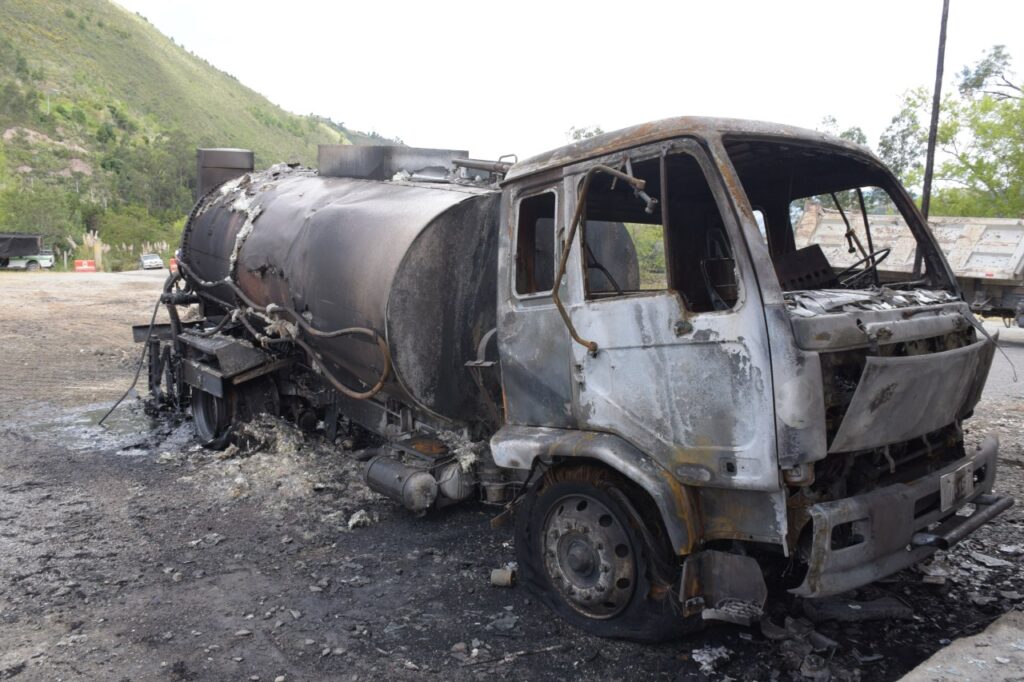 Un vehículo tipo tanquero de la empresa de Áridos y Asfaltos del Azuay, Asfaltar EP se incendió la noche del último viernes.