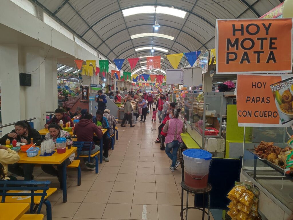 El tradicional mote pata, cuy asado con papas y mote, chancho hornado, cuero con papas; los dulces de higo, leche, leche y coco, durazno; el caldo de mocho, el de gallina criolla y otros platos más se pueden degustar desde 2,00 dólares en adelante.