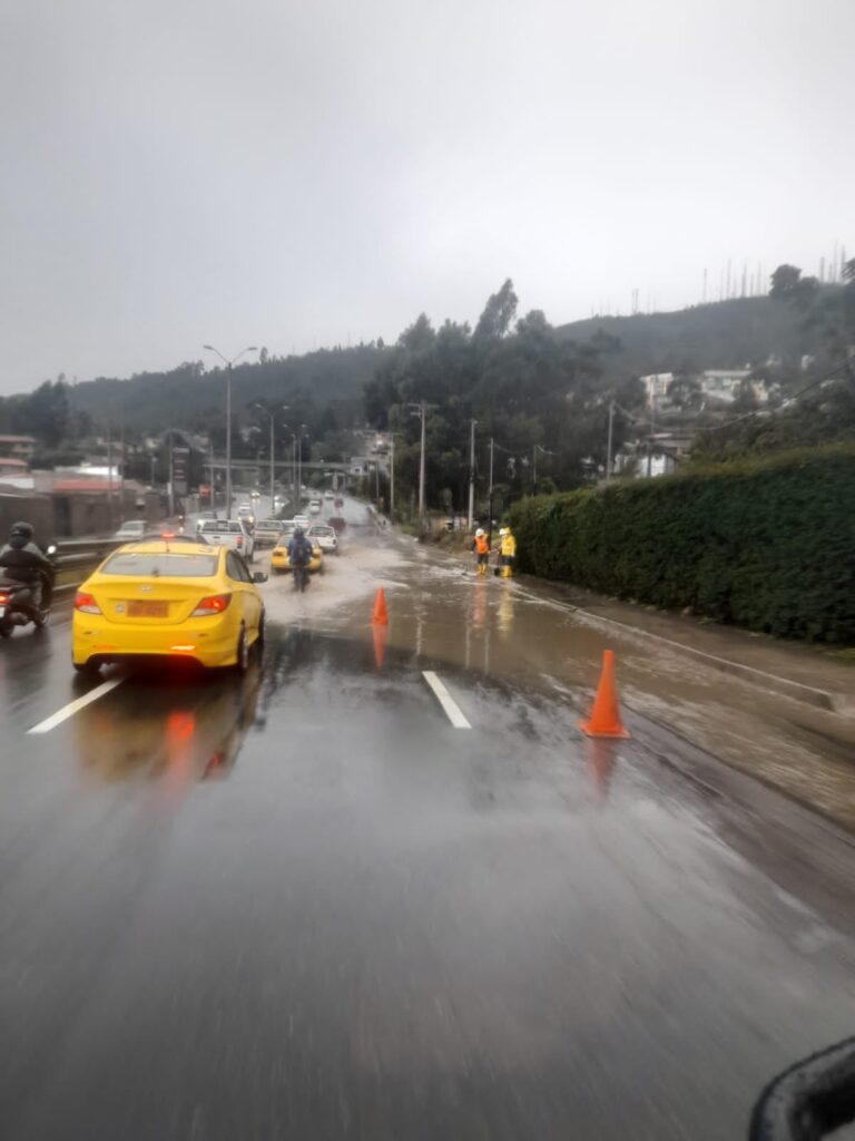 La acumulación de agua se presenta en varios tramos de la autopista Cuenca – Azogues, en la Avenida 24 de Mayo, el paso a desnivel de El Paraíso, según reportaron varios usuarios en redes sociales.