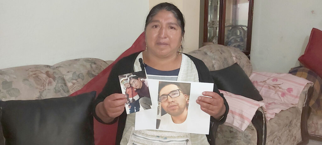 Junto a una capilla ardiente que se levantó en memoria de Edwin Santiago Villa Guichay, de 33 años, su madre, Amparito Guichay, llora desconsolada. Con fotografías en mano y un pantalón negro, que fuera encontrado en el río Tomebamba, espera que el cuerpo de su hijo sea localizado.