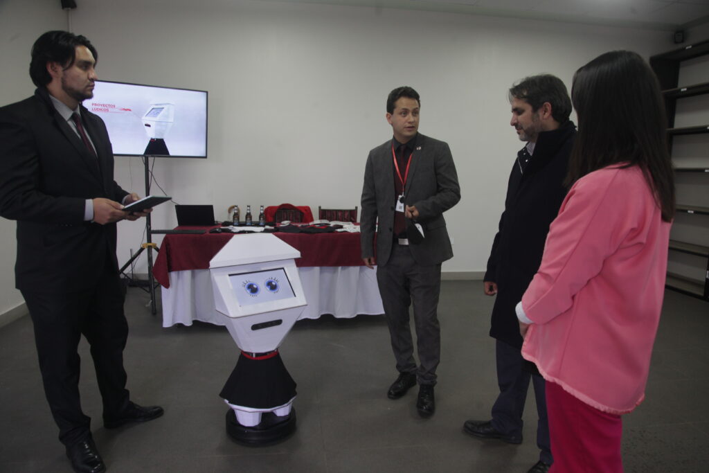 Junto a DROPI estuvo “CeCI”, un robot social que se puede usar como servicio de entrega o como equipo telemático. El aparato, que se puede controlar desde un celular, lo ideó el docente Carlos Flores, mientras estudiaba con una beca en Barcelona, España.