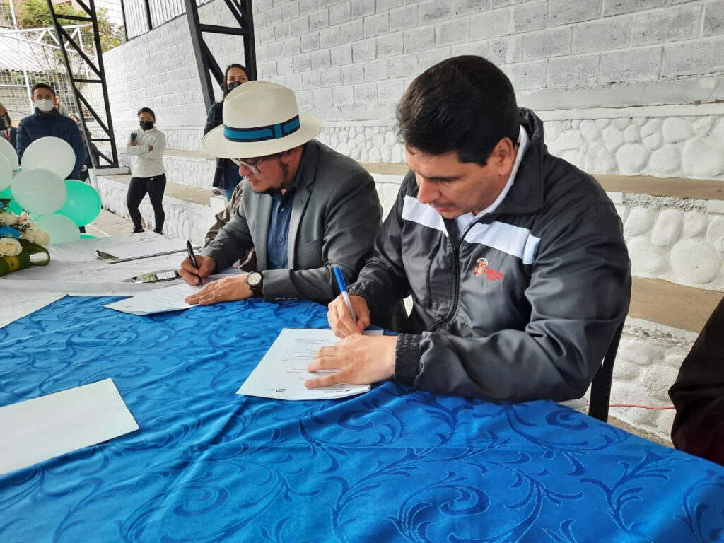 Pedro Palacios, alcalde, y Fabián Carrión, presidente de la Junta Parroquial, suscribieron un convenio para la intervención de esta vía y la remodelación del mercado, por un valor de 422.355 dólares.