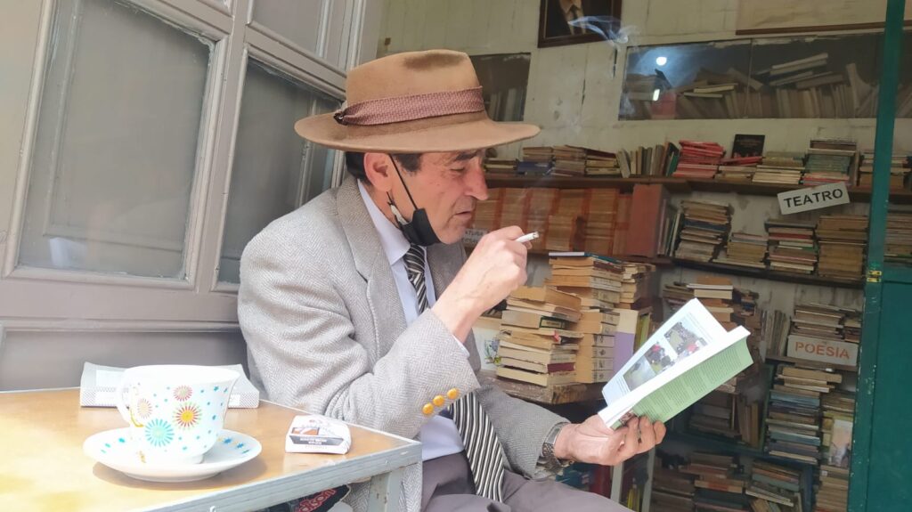 Mientras inhala el humo de su cigarrillo y toma un sorbo de su café caliente, sentado cómodamente sobre un banquito de madera, confiesa que es un asiduo lector. Tanto así que el libro parece una extensión de su mano, aunque reconoce que tiene un déficit de lectura.
