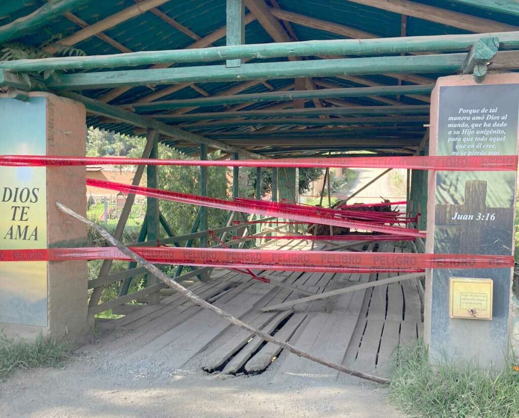 Los residentes de este sector temen que por la necesidad de paso las cintas de seguridad vayan a ser retiradas, lo que es un riesgo, dado que no se conoce las condiciones en las que quedó esta plataforma de madera. (CSM)-(I)