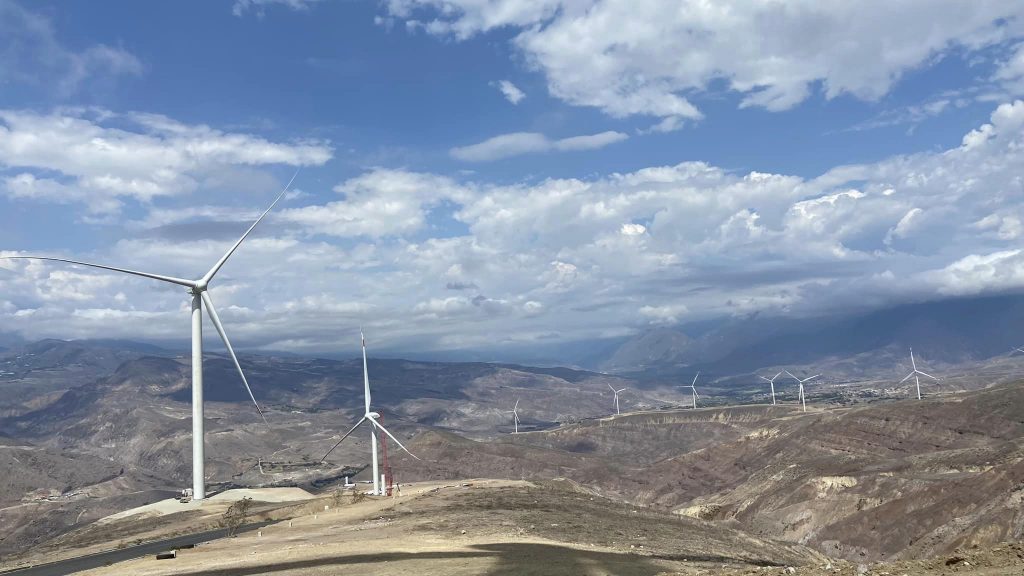 En la noche del jueves 26 de enero de 2023 se izó el último de los 14 aerogeneradores, de los que 11 ya están en fase de pruebas y aportan energía al sistema nacional, a través de la línea Cuenca-Loja, de 138 kilovoltios.