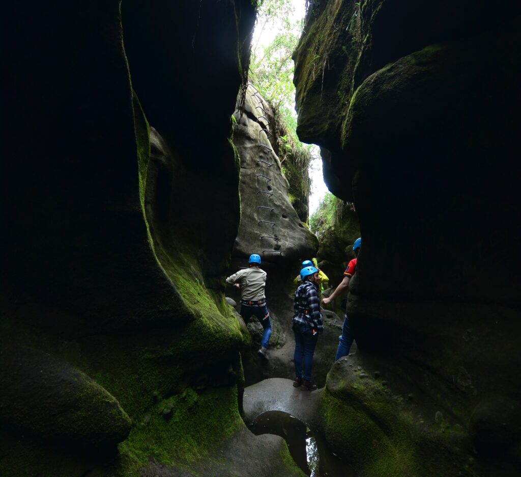 Al adentrarse en El Plateado se encuentran sus grietas, unas rocas sedimentarias con formas ondulantes, húmedas y cubiertas de musgo, producto de una formación generada por corrientes de agua, durante millones de años.