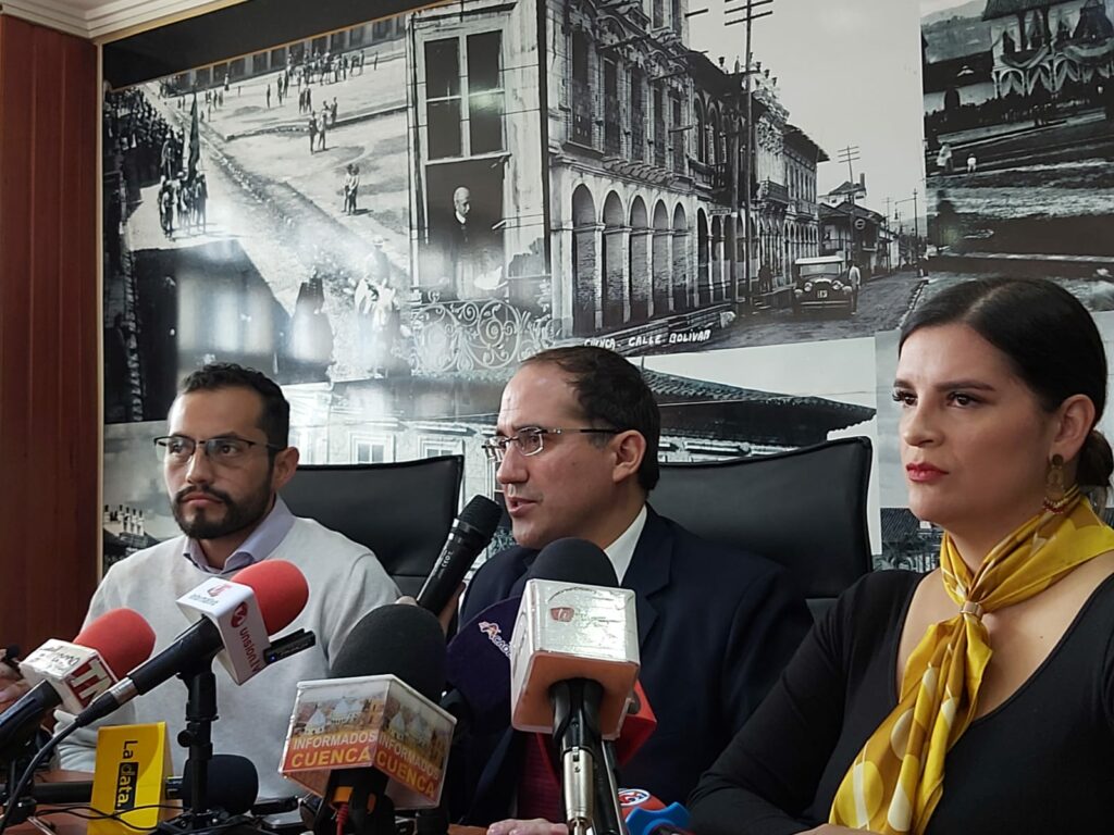 El gobernador del Azuay, Matías Abad; la jefa Política de Cuenca, Estefanía Vintimilla, y el intendente Gustavo Toledo renunciaron a sus cargos la mañana de este miércoles 3 de mayo de 2023, según lo anunciaron en una rueda de prensa.