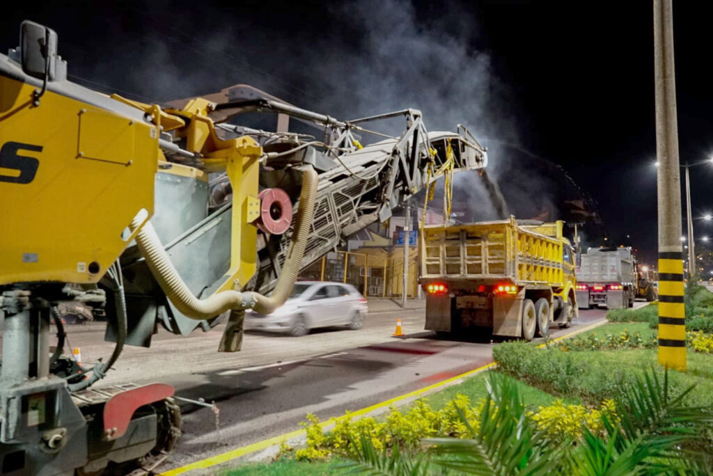 Los trabajos de repavimentación de la avenida De las Américas se realizan en horas de la noche desde esta primera semana de julio de 2023. Los trabajos están a cargo de la Municipalidad.