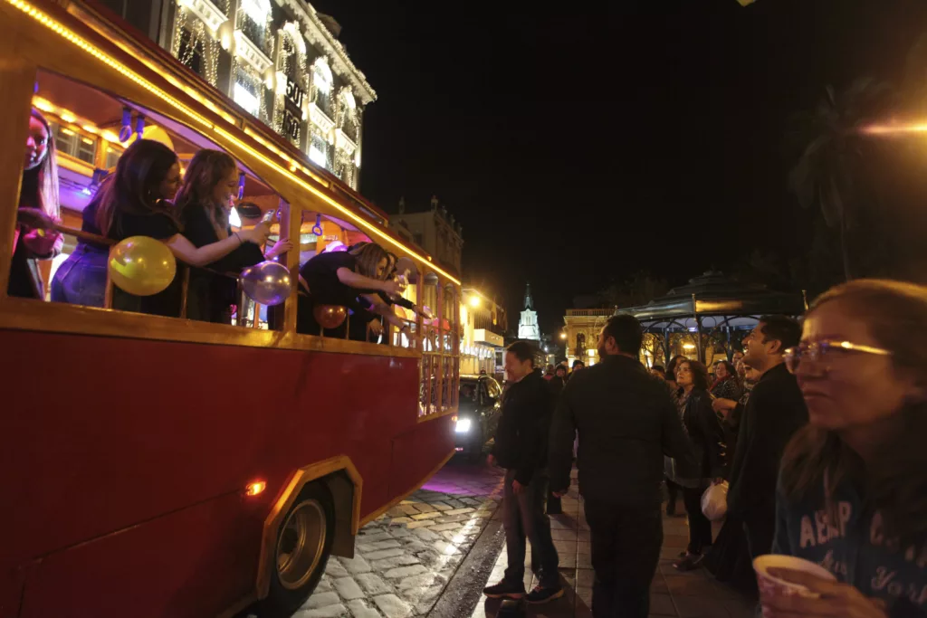 El momento más entretenido de la noche fue cuando pasaron por el Centro Histórico. Las calles más angostas ayudaron a que las risas y la música alegre retumben más fuerte. Incluso algunos conductores recibieron un par de bebidas de las alegres amigas.