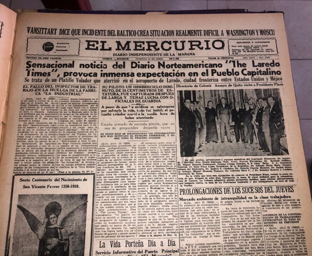 Con el titular «Sensacional noticia del diario norteamericano ‘The Laredo Times’ provoca inmensa expectación», se hizo referencia a un “platillo volador” que había aterrizado en el aeropuerto de Laredo, una ciudad fronteriza entre Estados Unidos y México.