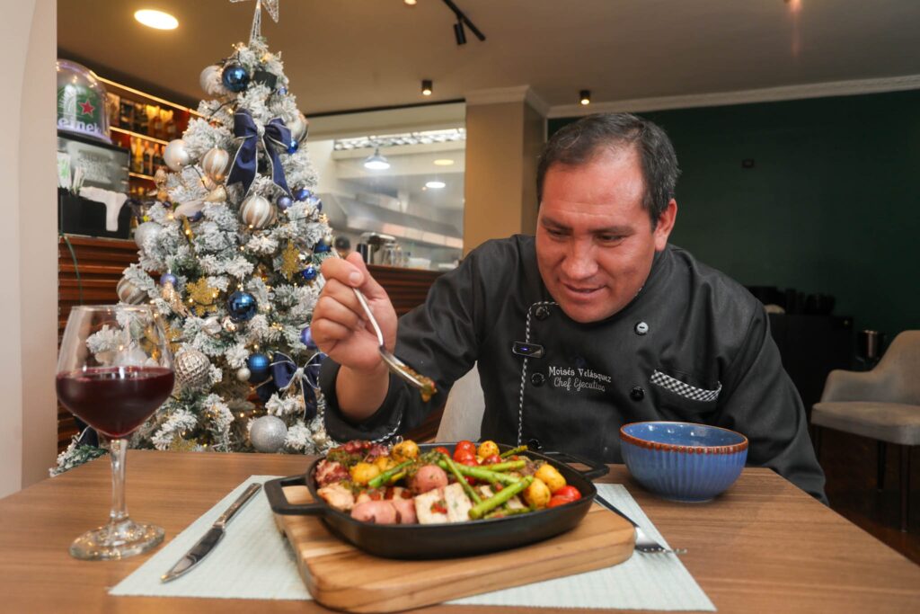 Moisés llegó hace 15 años como chef ejecutivo de una marca peruana. Pasó el tiempo y tomó hace cinco años la decisión de iniciar con su propio restaurante. Inició en la ciudad de Machala, y, desde hace nueve meses, abrió una sucursal en Cuenca.
