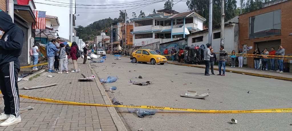 Por su lado, personal de la EMOV cercó el lugar para que se investigue el accidente que enlutó a Sayausí.