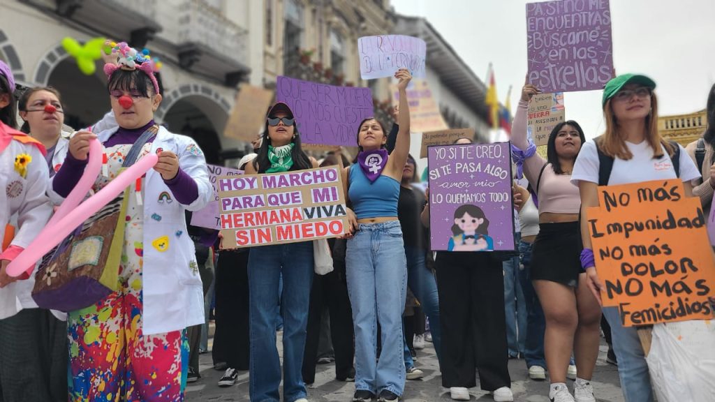 La jornada está marcada por exigencias de igualdad de género y el respeto a los derechos de las mujeres, uniéndose a las concentraciones que se realizan en ciudades como Quito y Guayaquil.