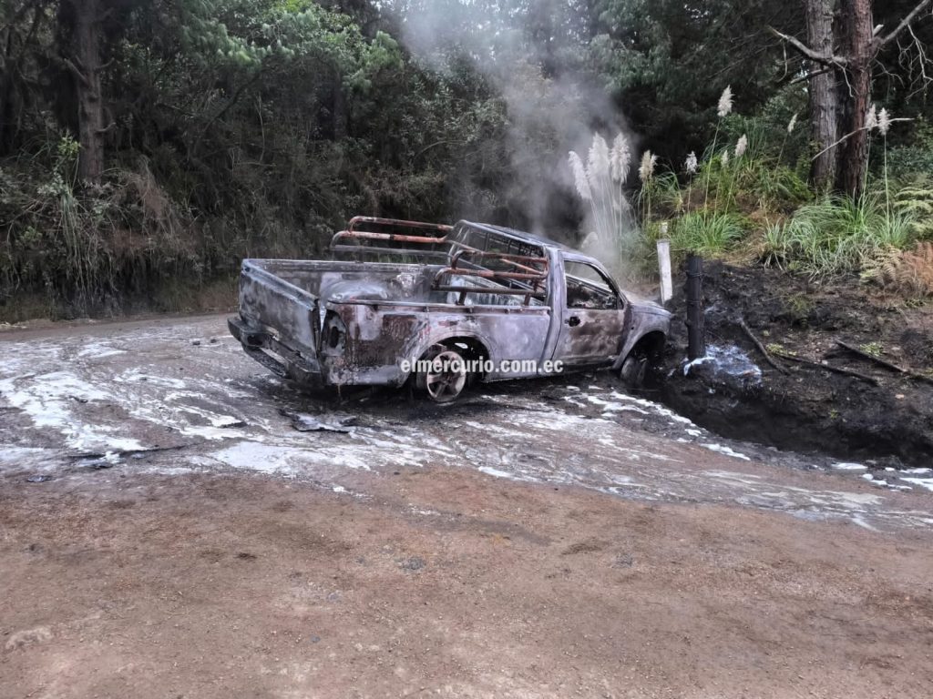 Una camioneta de presuntos cuatreros fue incinerada en el sector Nero de la ciudad de Cuenca.
