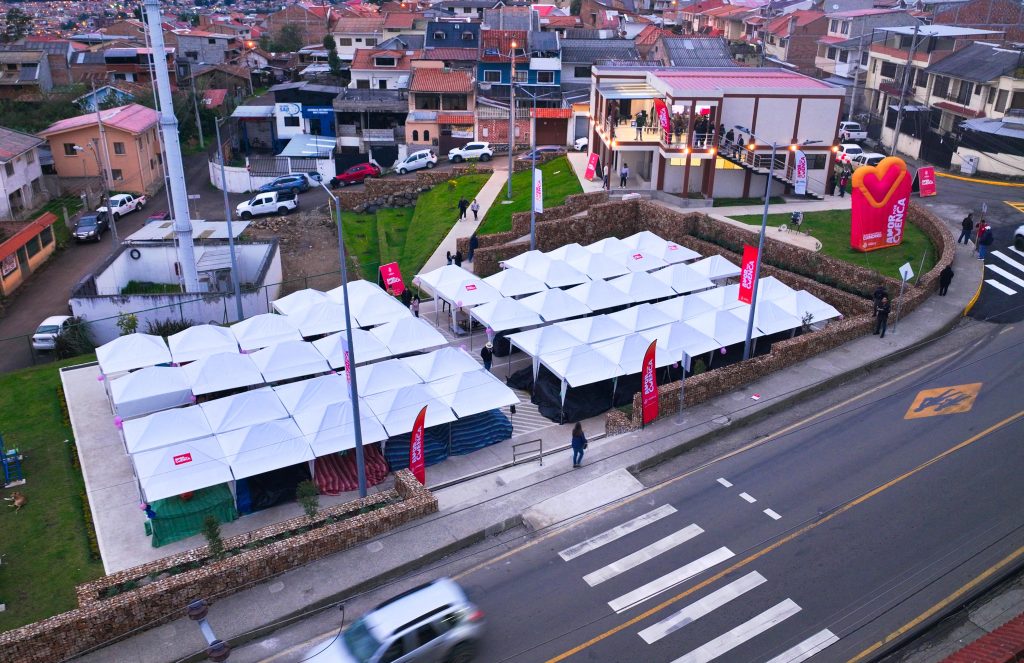 Para la renovación de la plataforma se construyó una hormigón en el que se colocaron las nuevas carpas para las 54 comerciantes. Asimismo se construyeron lavadores para los productos y baños.