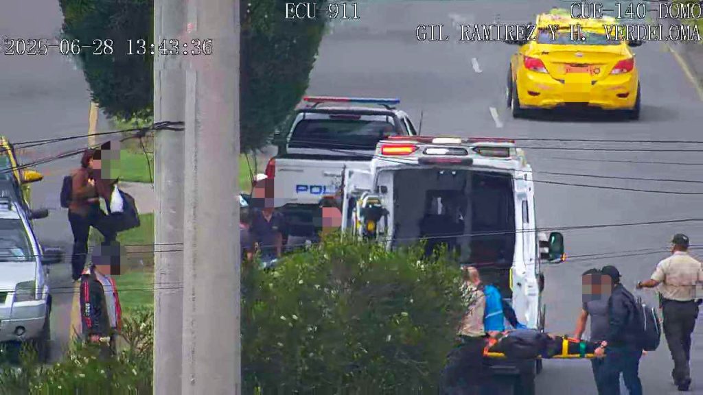 Una persona resultó herida tras ser atropellada por una motocicleta en la intersección de las calles El Chorro y Gil Ramírez Dávalos, en el sector de la Terminal Terrestre de Cuenca, la mañana del sábado, 28 de junio de 2025.