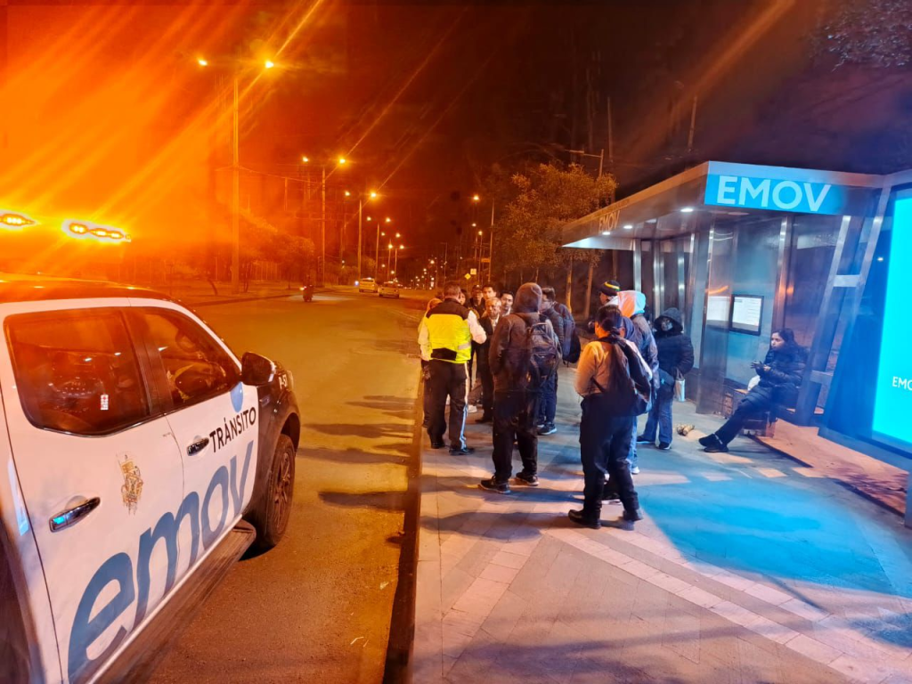 Agentes de la EMOV, a través de sus patrullas, trasladaron a ciudadanos hasta sus hogares ante la falta de buses urbanos la noche de este 5 de agosto de 2025.