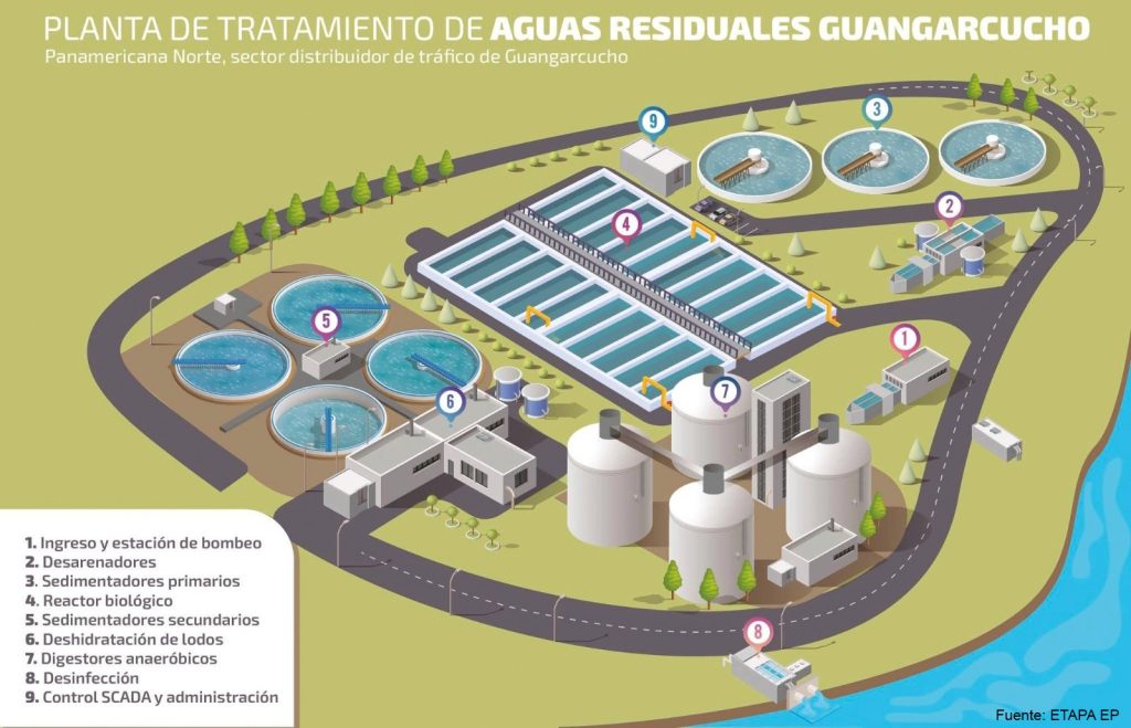 La Planta de Tratamiento de Aguas Residuales de Guangarcucho ocupará 7,4 hectáreas y tendrá la capacidad de depurar 2.000 litros por segundo.