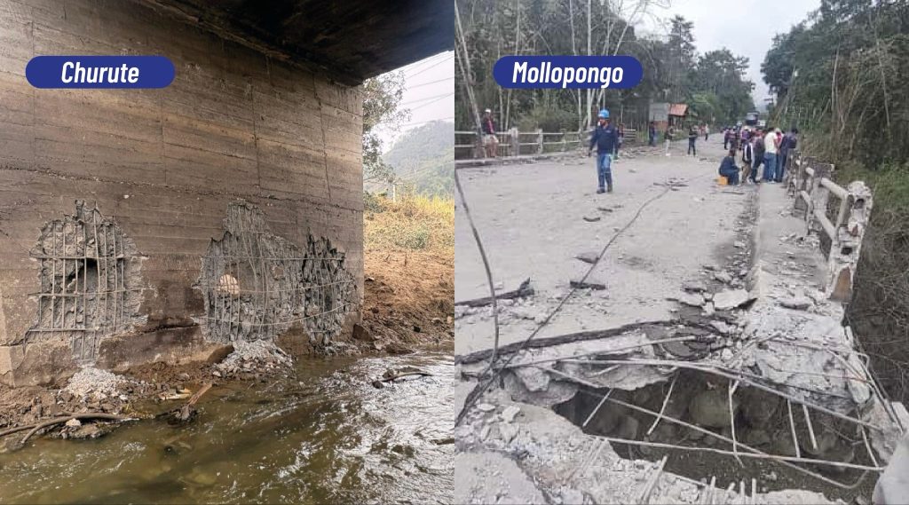 Los puentes Churute y Mollopongo permanecen temporalmente cerrados luego de las explosiones registradas en la madrugada de este 15 de octubre en Azuay y Guayas. El Ministerio de Transporte y Obras Públicas (MTOP) informó que ya se trabaja en soluciones técnicas y rutas alternas para garantizar la movilidad en las zonas afectadas.