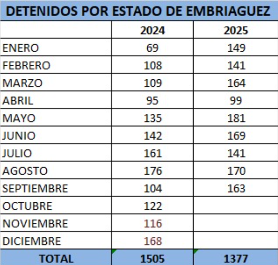 El número de conductores detenidos por manejar en estado de embriaguez aumentó un 25,3 % en Cuenca entre enero y septiembre de 2025, según datos de la Empresa Pública de Movilidad (EMOV EP).