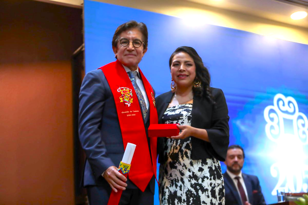 Durante la ceremonia, Cuenca recibió oficialmente el reconocimiento de la UNESCO como “Ciudad Creativa del Mundo en Gastronomía”, entregado por Tatiana Villegas, representante del organismo en Ecuador. La distinción, anunciada el 31 de octubre, reconoce el valor de la gastronomía cuencana como motor de desarrollo sostenible y cultural.