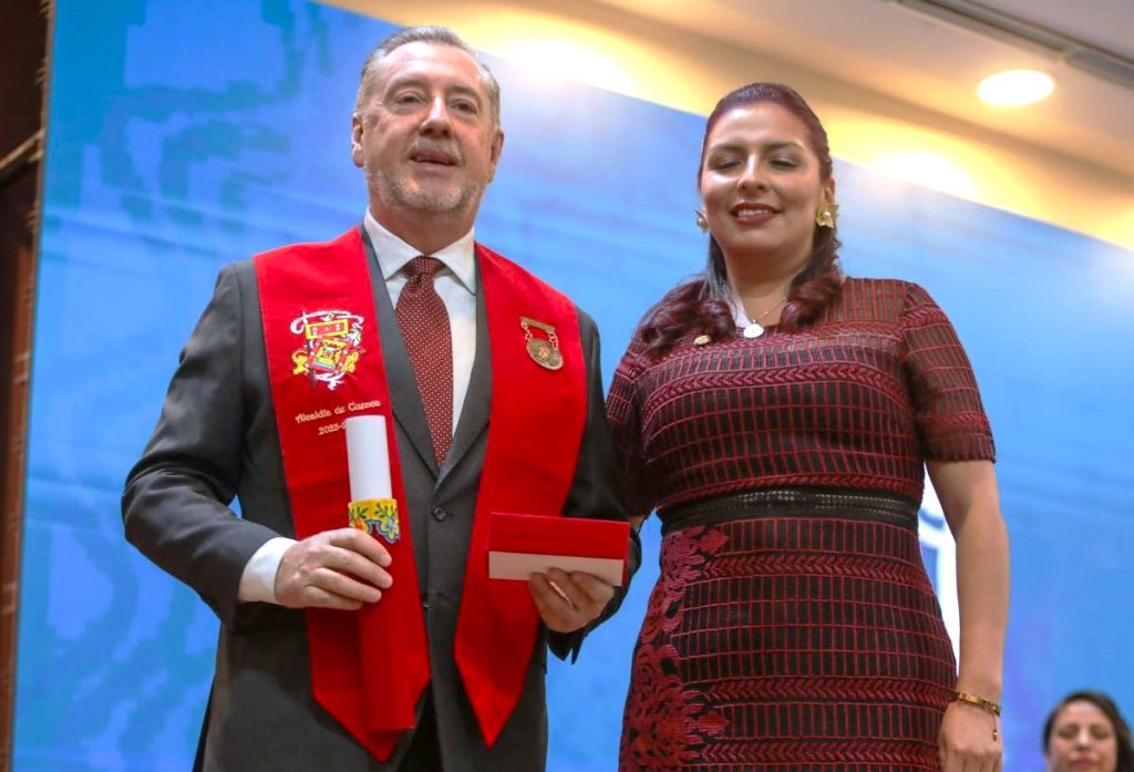 Juan Pablo Vintimilla Vinueza, por su promoción del turismo y la imagen de Cuenca como destino patrimonial y cultural recibió la insignia al “Mérito Turístico”, que entregó la concejal Jenny Bermeo.