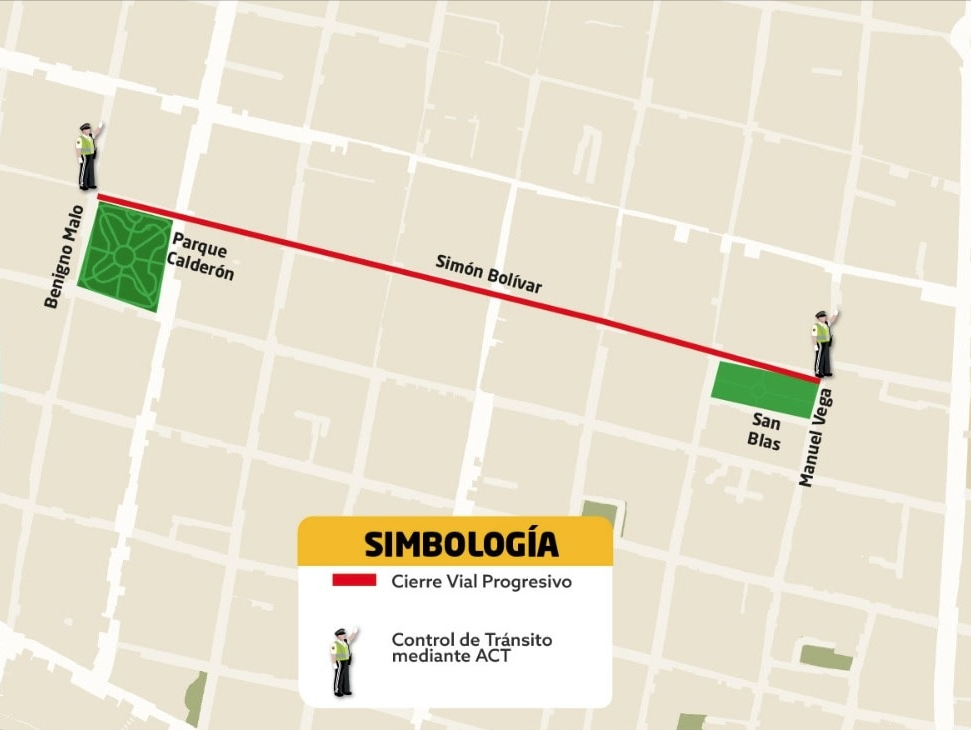 Según la información de la entidad municipal, se prevé el cierre de la calle Bolívar, desde el Parque de San Blas hasta el Parque Calderón.
