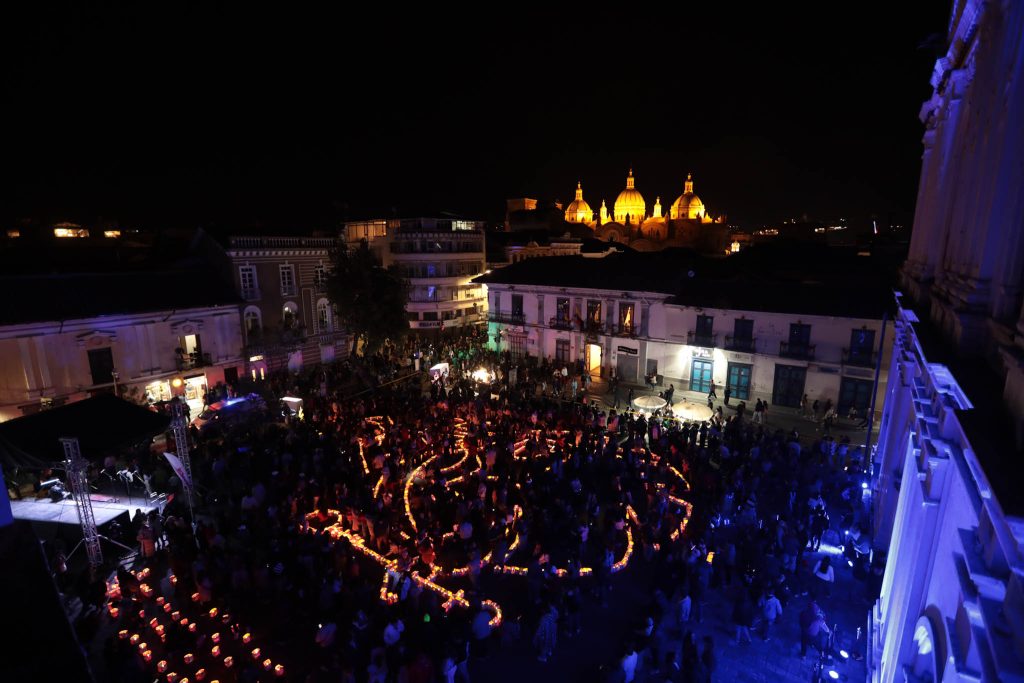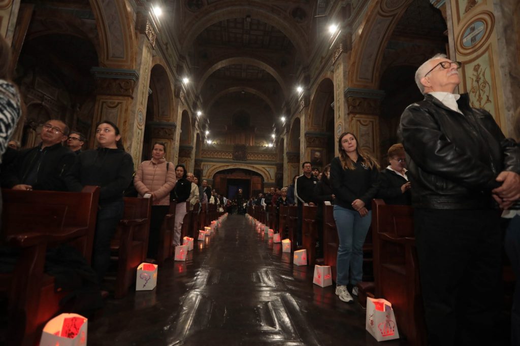 Poco antes de las 18:00, la plazoleta de Santo Domingo comenzó a llenarse de familias que, con velas y teléfonos en mano, registraron la edición número 18 del Festival de Luces, realizado en homenaje a la coronación de la Morenica.