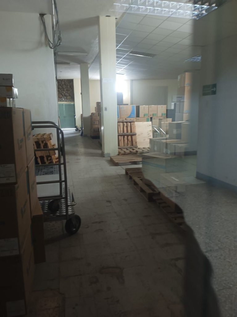 Sindicato General de Obreros de la Salud de la Provincia de Azuay (Sigeospa) difundió una fotografía con la que informó que la bodega de medicamentos de esta casa de salud está vacía.