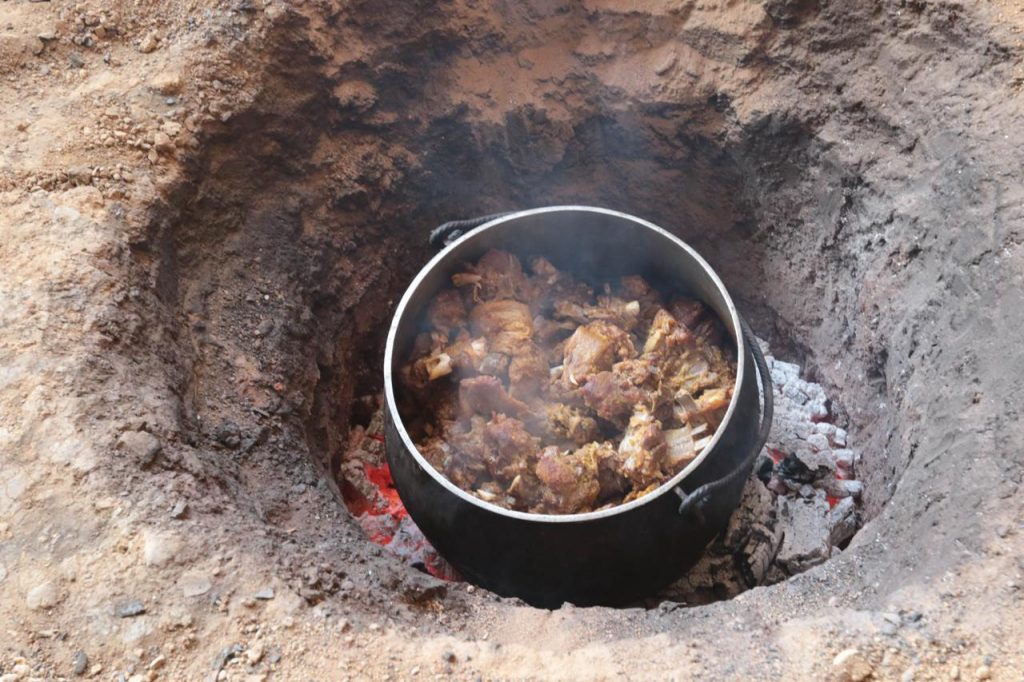 Allí mantiene una cocción con leña y bajo tierra con la receta heredada de la abuela Lucinda, que vivió 102 años.