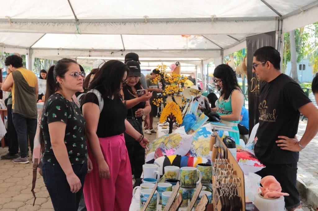 Nora, una de las emprendedoras, ofrece cuadros, manillas y plantas de guayacán. Otros venden camisetas, vinos artesanales de café y tamarindo, miel de abeja, cacao orgánico o imanes y llaveros con la silueta del árbol en flor. Desde temprano, los puestos se abren para atender a los visitantes.