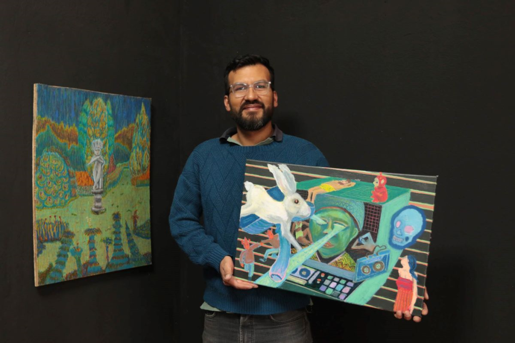 Sarmiento, músico y compositor además de artista visual, articula óleo pastel, serigrafía, animación y música en vivo en un diálogo que integra imagen y sonido. La muestra permanecerá abierta hasta el 28 de febrero.
