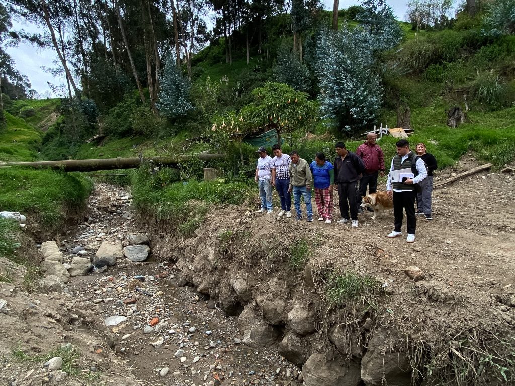 Gloria Guanuchi, Ximena Valencia, Felipe Cornejo y Alfonso Peñafiel fueron algunos de los vecinos que se   reunieron ayer para exponer las obras en ejecución y dar a conocer las necesidades del Barrio El Molino, parroquia Bellavista.