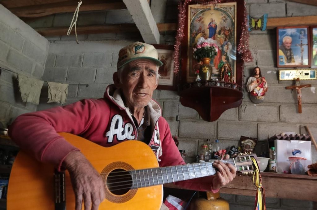 Sus manos ágiles pulsan las cuerdas de la guitarra clásica y entona el pasillo Aunque tarde pero regresa, del compositor Fausto Galarza.