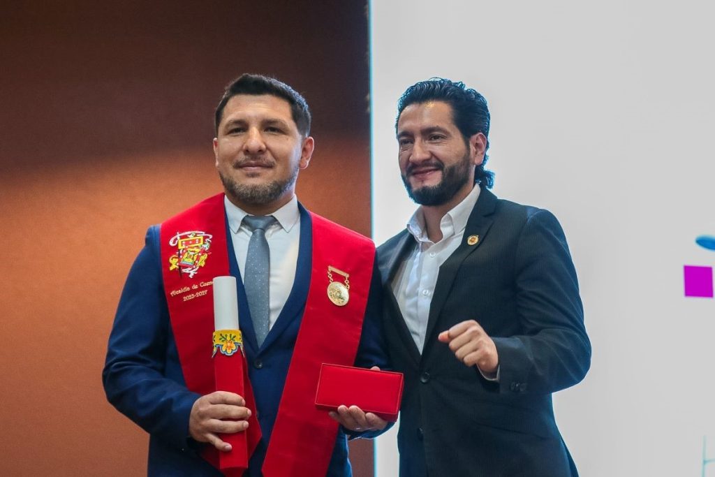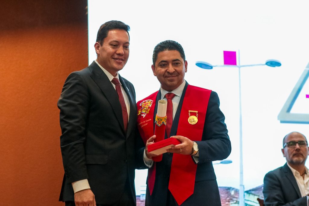 El rector de la Universidad de Cuenca, Rodrigo Mendieta, recibió la insignia Virrey Hurtado de Mendoza por el trabajo de ACORDES, por su destacada trayectoria desde 1996 impulsando iniciativas académicas y sociales que vinculan la academia el sector público y la sociedad civil. Por promover el desarrollo territorial, la participación ciudadana y políticas públicas inclusivas con impacto positivo en Cuenca y la región. El alcalde Cristian Zamora entregó el galardón.