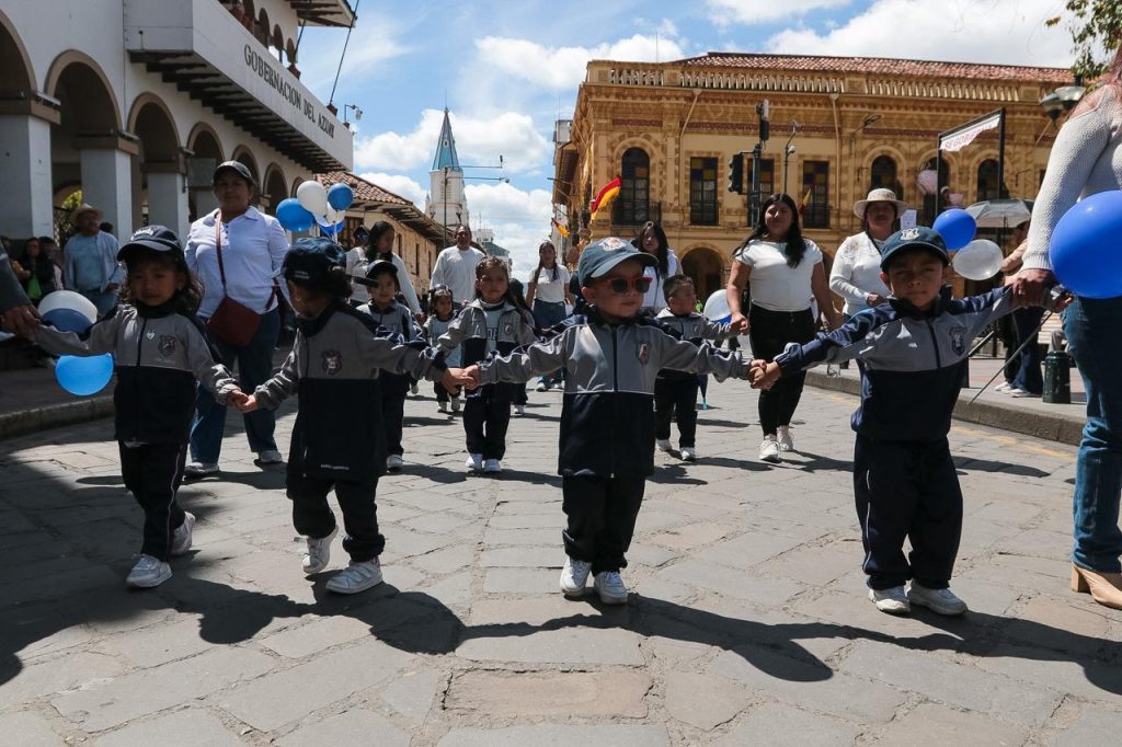 La calle Bolívar, en el Centro Histórico de Cuenca, el sábado 18 de abril de 2026, se llenó de color y vida para rendir un sentido homenaje a la emblemática Escuela de Educación General Básica ‘Federico Proaño’ por sus 105 años de fundación.