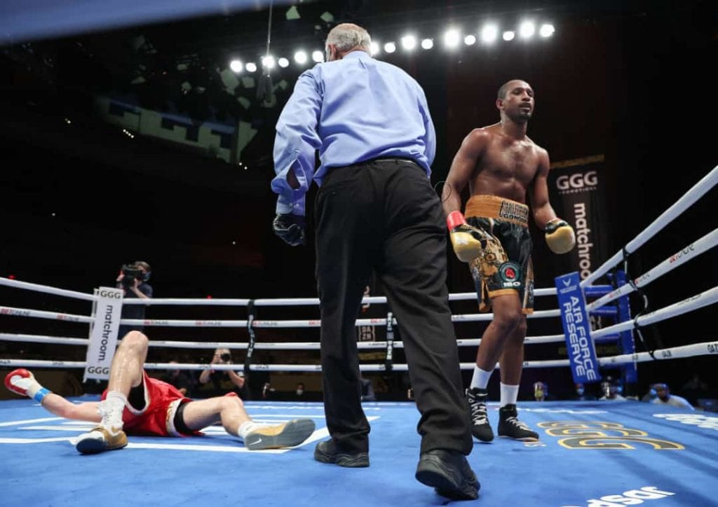 Con un sorprendente performance Góngora derribó al kazajo quien en medio del conteo del árbitro no pudo volver a pararse quedando por terminado el combate. En contrapartida, Góngora celebró sobre el cuadrilátero mientras los comentaristas se sorprendían mencionando al ecuatoriano como el nuevo campeón mundial.