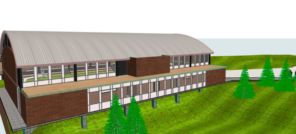 Una rampa conduce al visitante a una balconada y al comedor-auditorio que tienen un ambiente campestre. Los accesos y comodidades para personas con discapacidad están pensados también en el equipo de baloncesto en silla de ruedas que proyecta armar el Club a mediano y largo plazo.