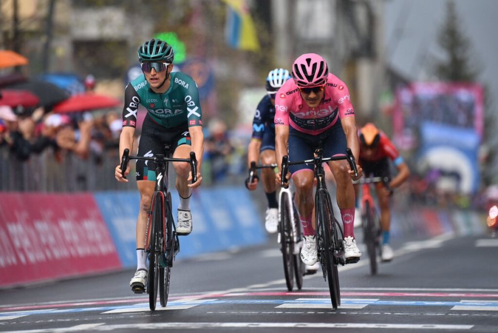 Tras una gran carrera, Carapaz se disputó el sprint final con el australiando Jai Hindley, que fue quien finalmente cruzó la meta en tercer lugar y le descontó 4 segundos a Carapaz.