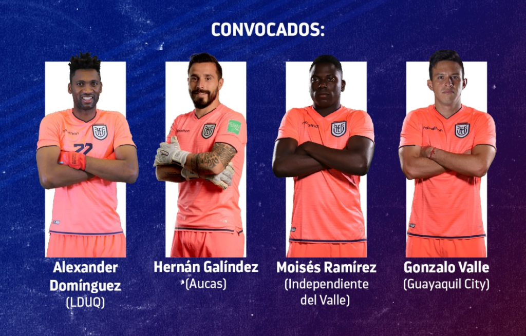 La Selección ecuatoriana de fútbol convocó este viernes a los guardametas Alexander Domínguez, Hernán Galíndez, Moisés Ramírez y Gonzalo Valle como parte de un proceso de integración de la plantilla que participará en el Mundial de Catar.