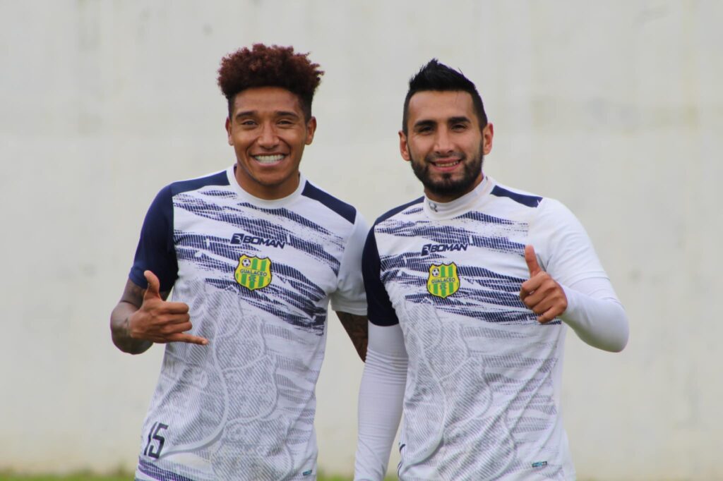 Isaac Cabrera (I) junto a Diego Ávila en uno de los entrenamientos en Azogues. Foto Gualaceo SC