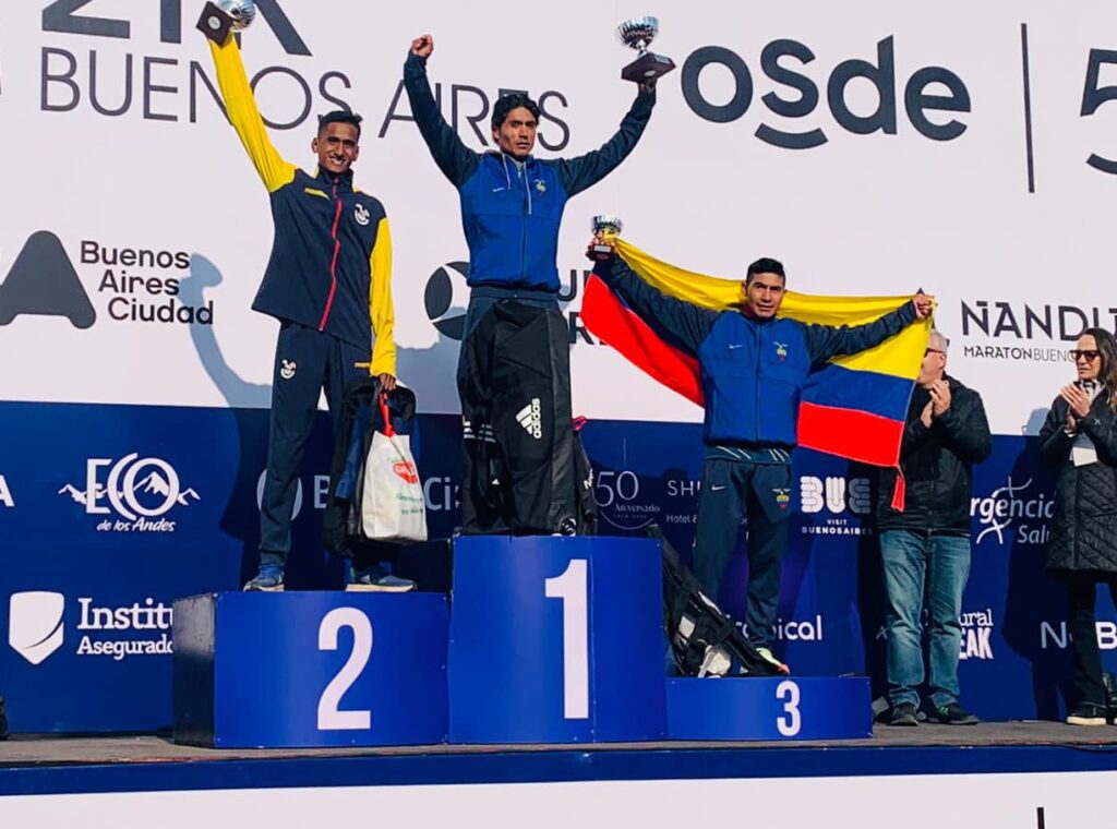 El atleta, quien compitió con el aval de la Federación Ecuatoriana de Atletismo, subió al podio con un tiempo de 01h:01.5