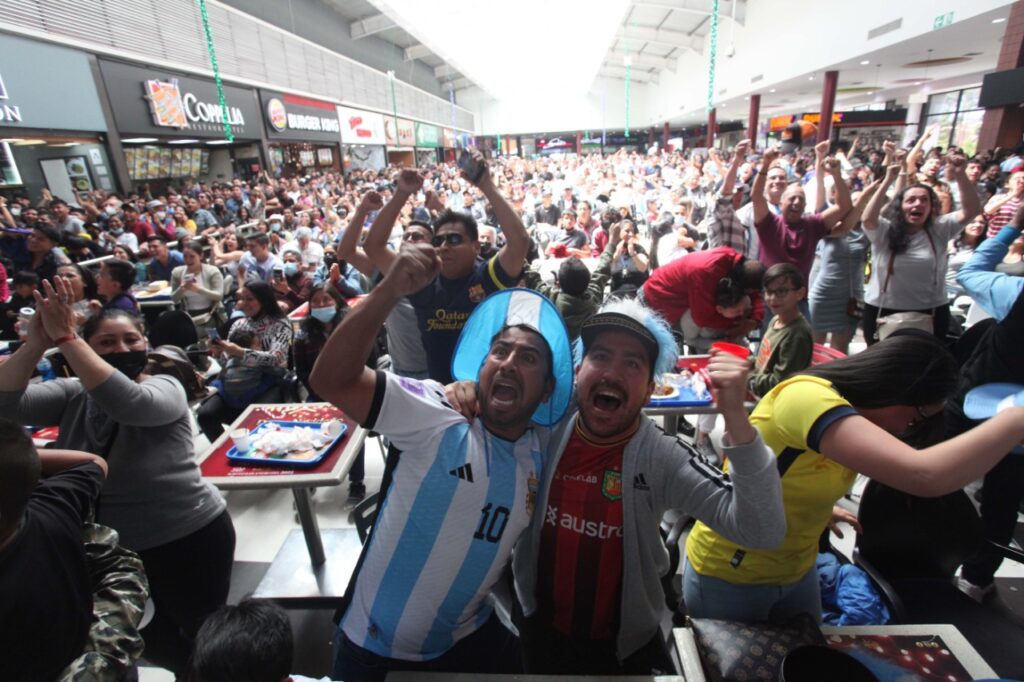No dejaban de soñar con la postal en la que Messi sostenga la Copa Mundial. La alegría en los asistentes a este Centro Comercial se desbordó, tras el primer tanto de la albiceleste, que fue anotado por el capitán del equipo, a los 23 minutos de penal.