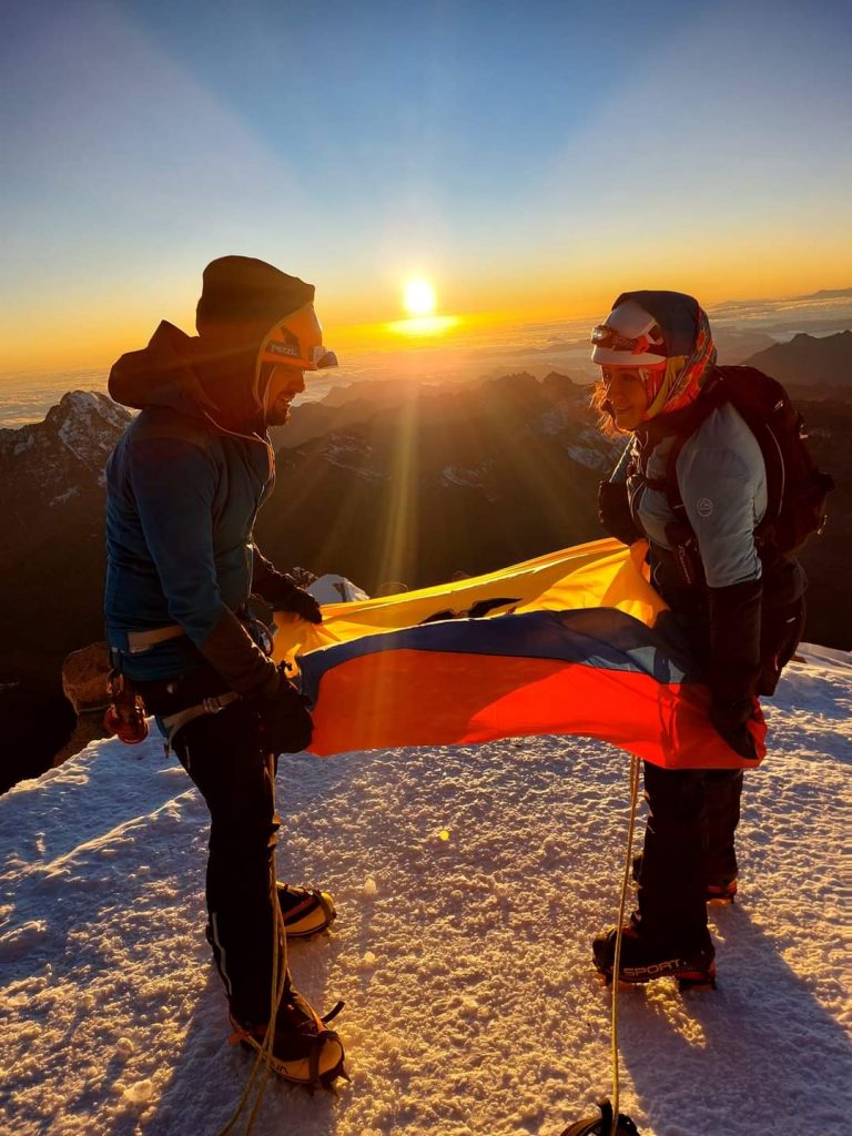 “Nos abrazamos, pero el viento imposibilitaba el festejo. Sacamos las banderas de Cuenca y de Ecuador. Es una emoción inexplicable. Estuvimos cerca de cinco minutos en la cumbre y luego inició el descenso. Todo fue 70 % corazón y 30 % esfuerzo físico”, relata con emoción la cuencana.