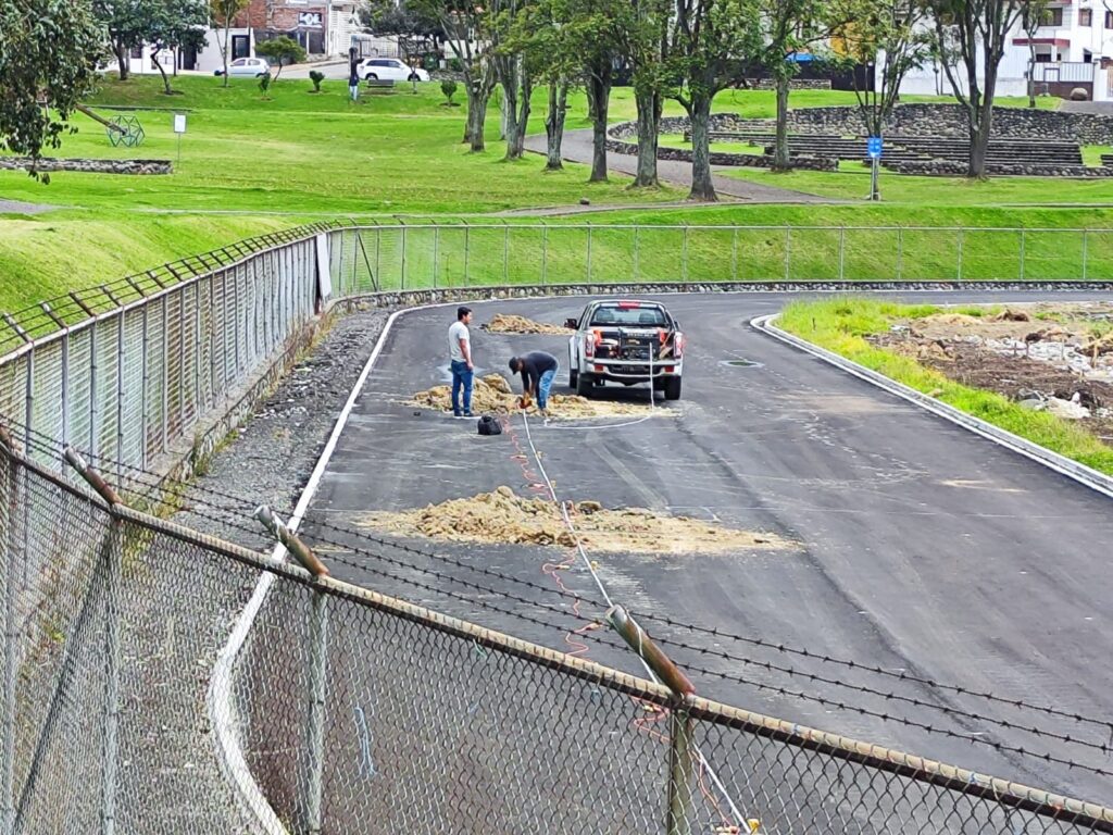 Los trabajos en la pista Jefferson Pérez se reanudaron sobre todo en el sector opuesto a la tribuna donde se detectó un asentamiento. «Se están haciendo ensayos de refracción sísmica para ver la calidad de los suelos», dijo el fiscalizador Iván Agama.