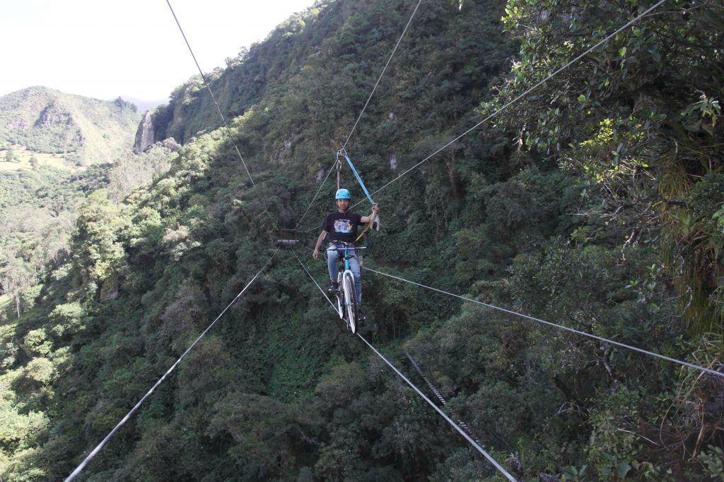 Se trata de una bicicleta que pende a 100 metros de altura y atraviesa por un cable asegurado de extremo a extremo. La velocidad es opción del usuario, puede ir tan rápido como pedalee. Esta atracción es única en la provincia y tiene un costo de $10.00.