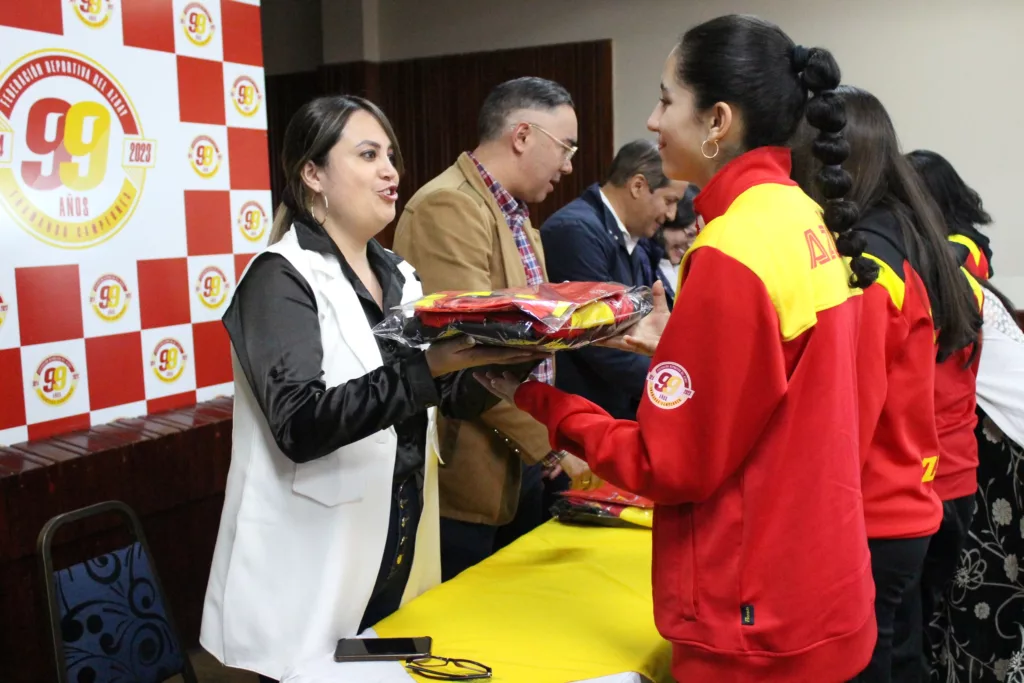 Autoridades de Federación Deportiva del Azuay (FDA) entregaron la indumentaria oficial a las primeras delegaciones que competirán en los Juegos Nacionales de Menores. Cortesía